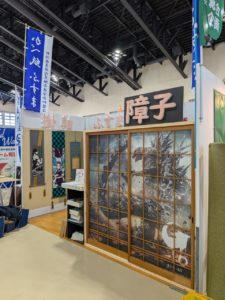 過去2回の出店の時はクロス(壁紙)床貼り、カーテンブラインドなど内装リフォームの提案でしたが、今回は襖、障子、掛け軸などをメインとした内容にしました。予想より多くの方にブースに来て頂き、来場者からは「襖、障子の貼り替えはどこに頼んだらよいか分からなかったで知れてよかった」などの声もあり、当組合を少しでも知って貰えたのかと思います。これを機にこういった内容の仕事依頼が増える事を願っております。